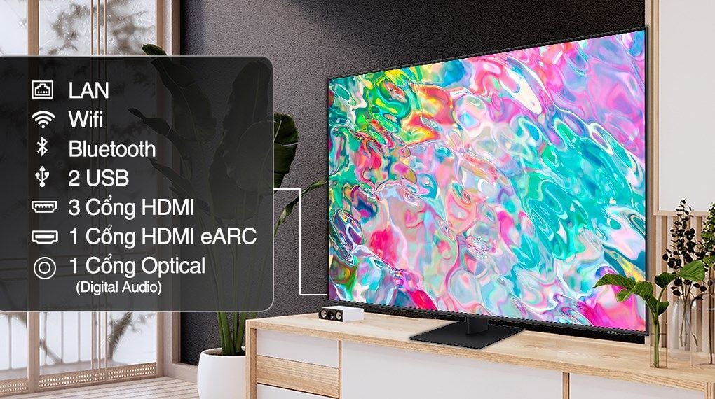 - QLED: Màu sắc rực rỡ, độ sáng cao, phù hợp với phòng khách nhiều ánh sáng.