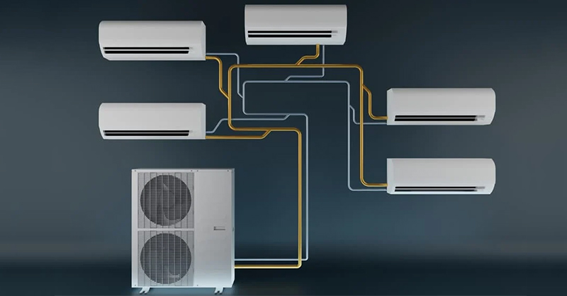 - Hệ thống ống dẫn: Kết nối dàn nóng với các dàn lạnh, giúp truyền tải khí lạnh hoặc ấm đến từng phòng.