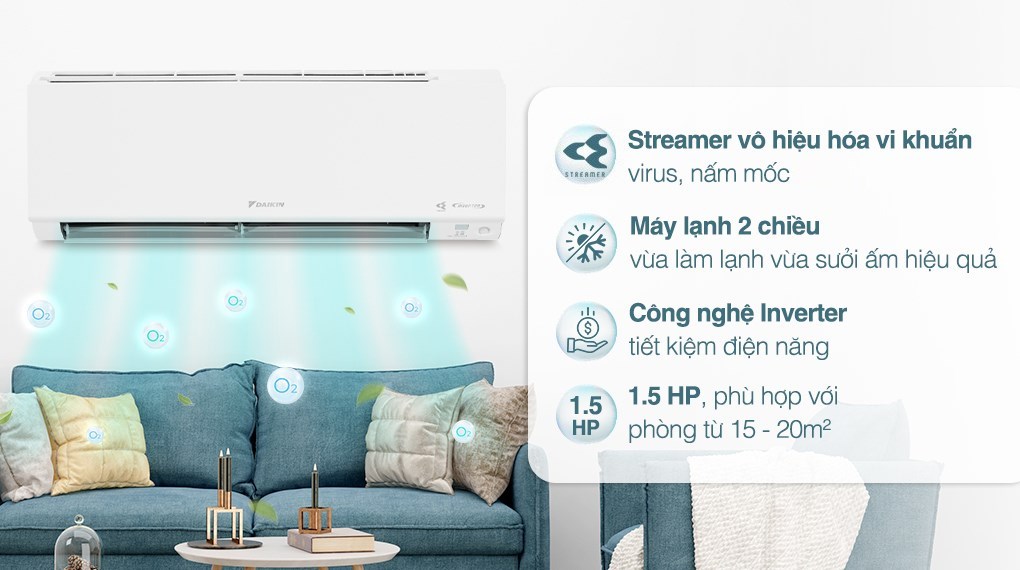 2. Daikin Inverter 2 chiều 1.5HP FTXV35QAV