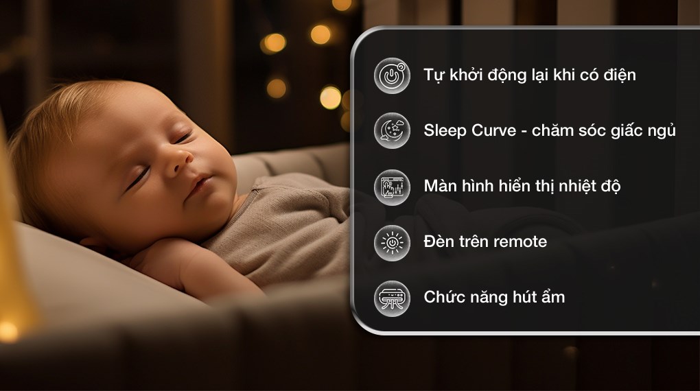 | Tiện ích | - Điều khiển bằng điện thoại, Wi-Fi - Remote có đèn nền - Kết nối thông minh IoT - Follow Me - Chế độ tự làm sạch Active Clean - Gear mode - Sleep Curve - Hiển thị nhiệt độ trên dàn lạnh - Hút ẩm - Tự khởi động lại khi có điện - Điều khiển bằng giọng nói - AI Cool |