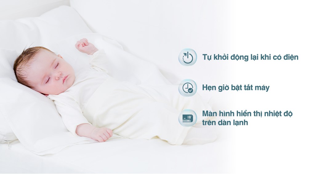 | Tiện ích | Chế độ ngủ ngon Good Sleep; Màn hình hiển thị nhiệt độ trên dàn lạnh; Hẹn giờ bật, tắt máy; Tự khởi động lại khi có điện |