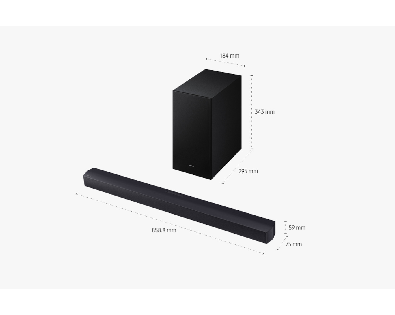 | Kích thước loa chính (RxCxS) | 85.88 x 5.9 x 7.5 cm |