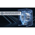 - Máy được trang bị kiểu động cơ truyền động gián tiếp dây curoa kết hợp cùng công nghệ tiết kiệm điện BLDC Inverter giúp máy vận hành êm ái, ổn định.