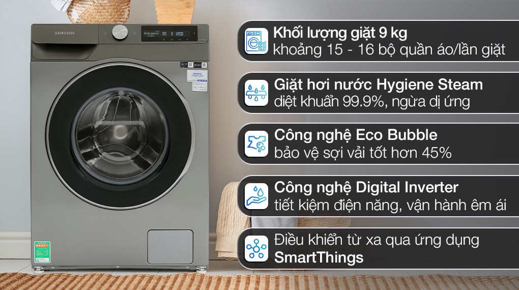- Công nghệ EcoBubble giúp tạo bọt siêu mịn, giặt sạch sâu và tiết kiệm năng lượng.