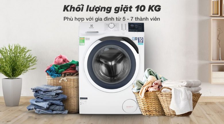 - Gia đình 4–5 người: Máy giặt 9–10kg là lựa chọn lý tưởng.