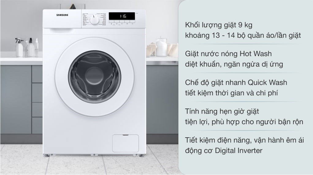 - Đặc điểm nổi bật: Công nghệ Digital Inverter tiết kiệm điện, chế độ giặt nhanh 15 phút, hoạt động êm ái.