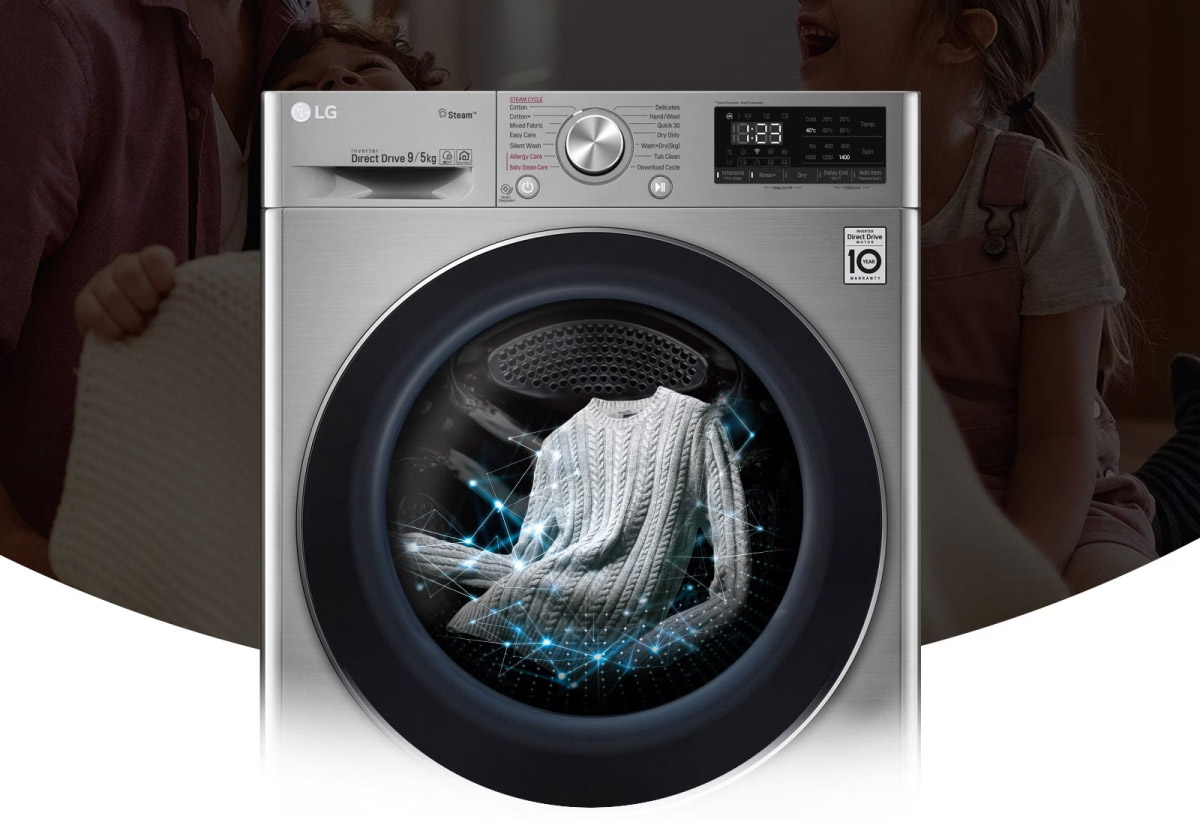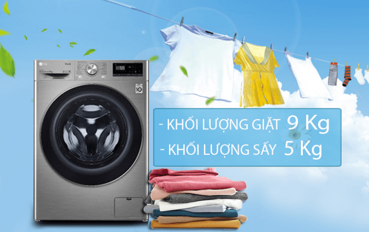 1. Máy giặt sấy combo LG Inverter AI DD FV1409S2W (9kg giặt – 5kg sấy)