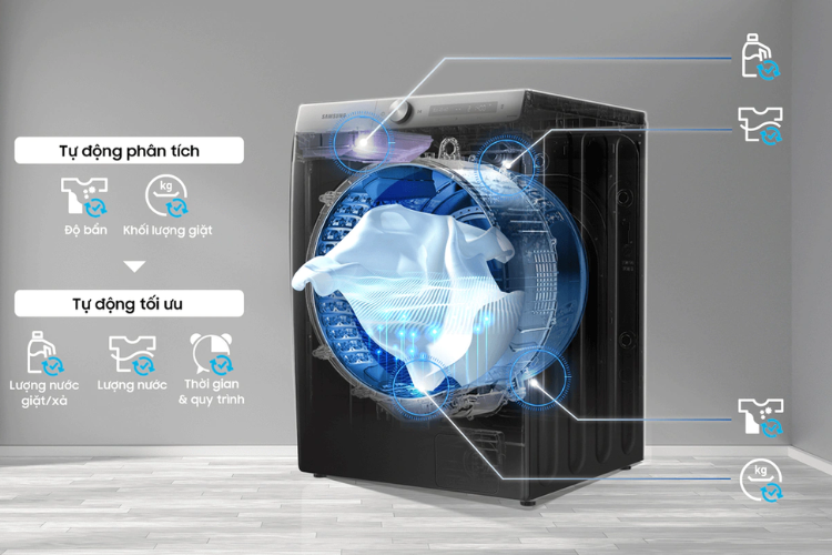 - Tiết kiệm năng lượng: Tự động điều chỉnh lượng nước, nhiệt độ và thời gian giặt để giảm tiêu thụ điện và nước.