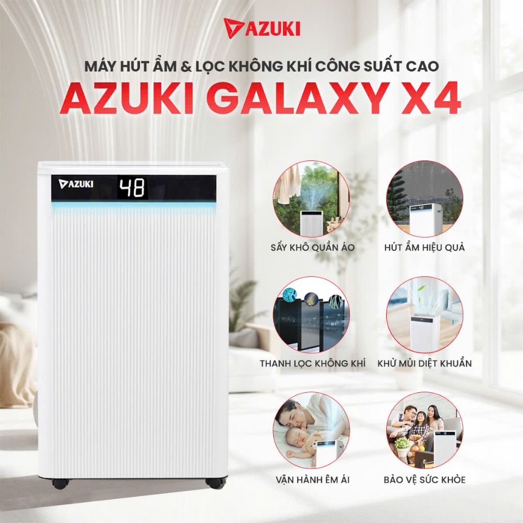 Độ ẩm cao trong phòng ngủ nhỏ dễ gây ẩm mốc, mùi hôi, ảnh hưởng tới sức khỏe, đặc biệt là trẻ nhỏ, người già hoặc người bị dị ứng, hen suyễn. Máy hút ẩm AZUKI mini giúp kiểm soát độ ẩm hiệu quả, bảo vệ không gian sống, giữ cho phòng ngủ luôn khô ráo, sạch sẽ, nâng cao chất lượng giấc ngủ và sức khỏe.