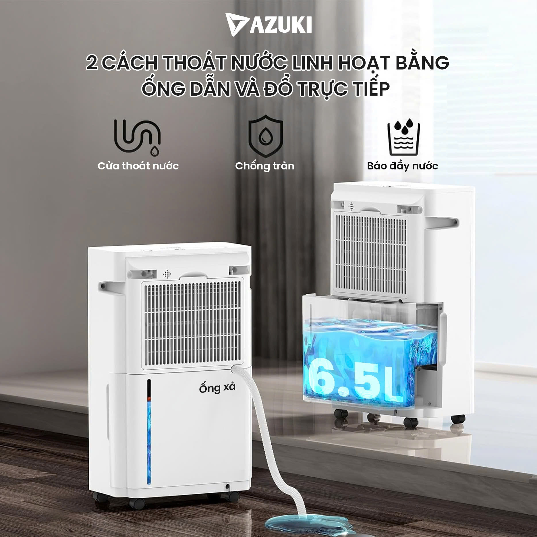 3. Máy hút ẩm AZUKI Mini Dehumidifier 6L