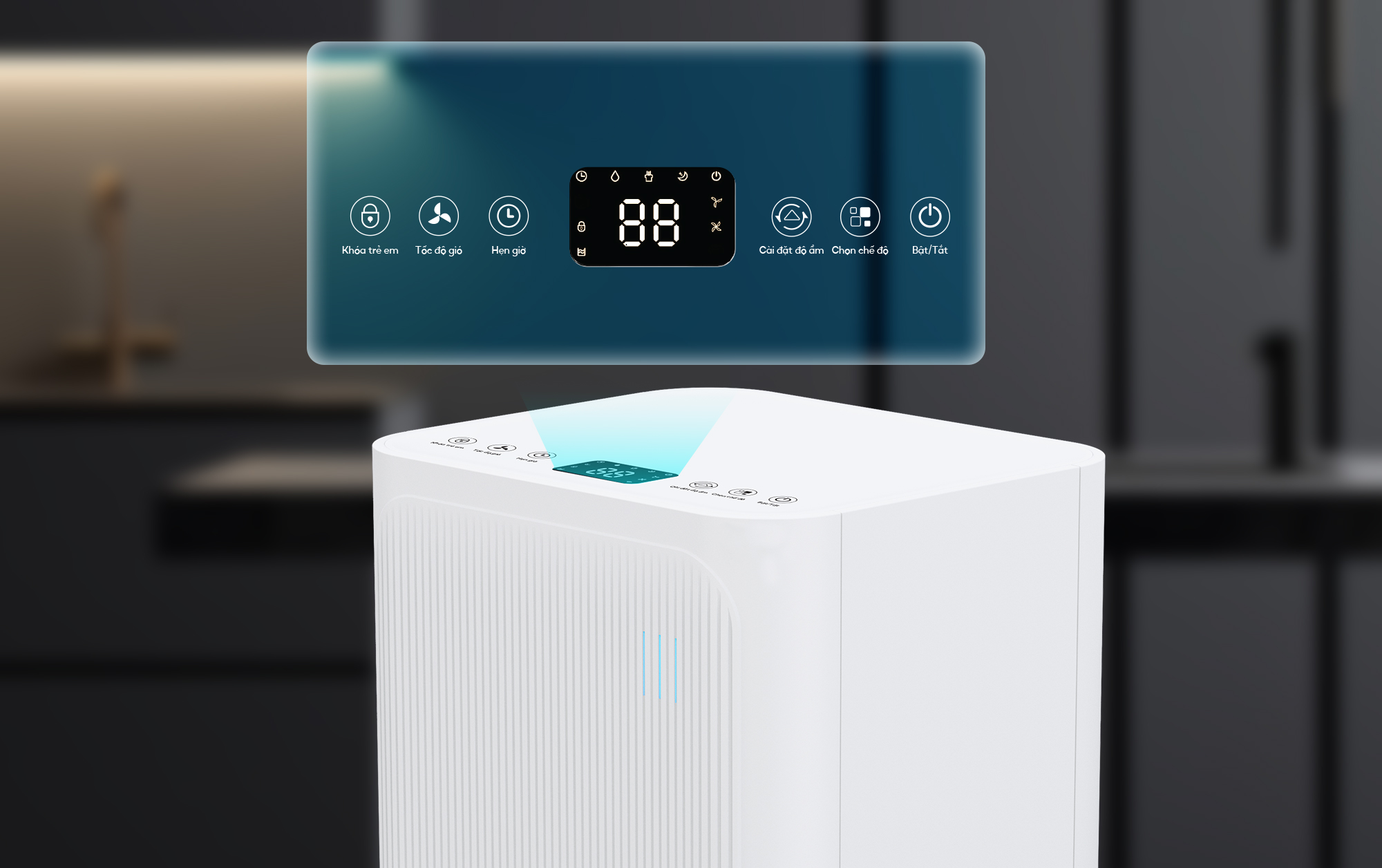 Đèn báo độ ẩm 3 màu trực quan, dễ dàng theo dõi và điều chỉnh.