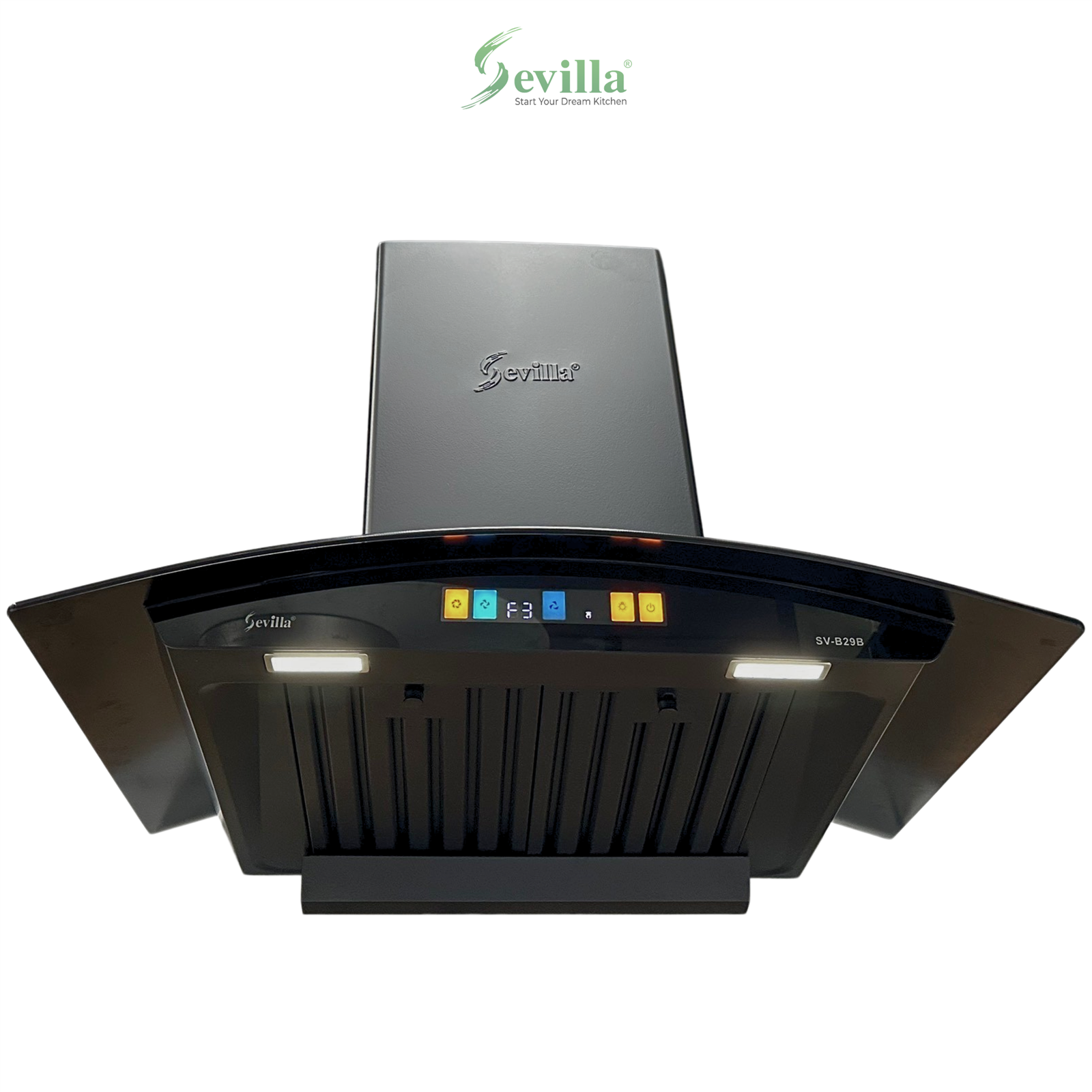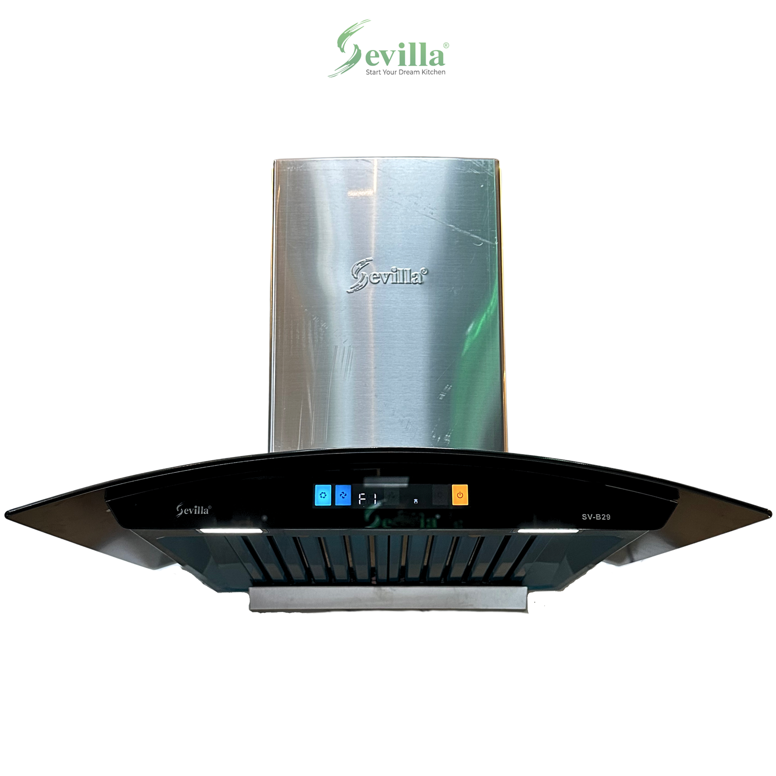 Ngoài tính năng, SV-B29B còn là điểm nhấn thẩm mỹ cho không gian bếp của bạn. Thiết kế kính vát độc đáo kết hợp chất liệu inox đen Stainless Steel và kính cường lực Tempered glass cao cấp tạo nên vẻ đẹp sang trọng, hiện đại. Bề mặt kính bóng loáng dễ dàng vệ sinh, luôn giữ được vẻ đẹp như mới. Màn hình LED hiển thị rõ ràng, các phím cảm ứng đặt vị trí khoa học, thuận tiện cho người dùng. Chiếc máy hút mùi này sẽ làm nổi bật và nâng tầm không gian bếp của bạn.