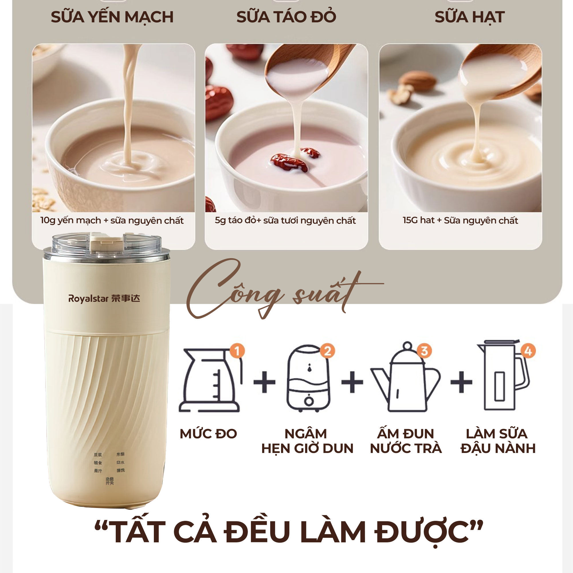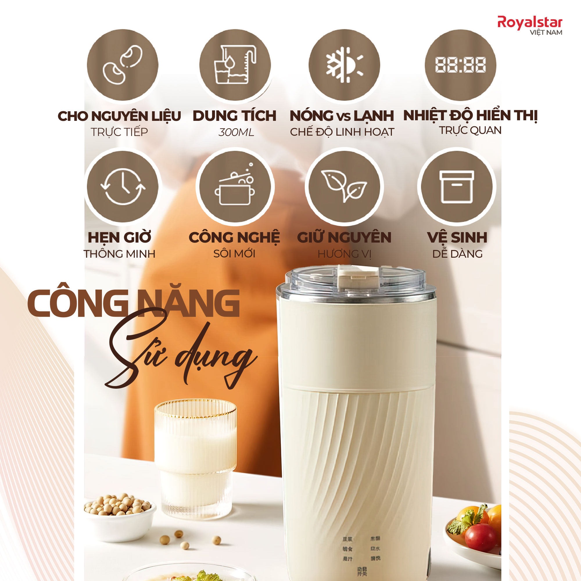 Trong lĩnh vực thiết bị gia dụng, nhu cầu chế biến thực phẩm nhanh gọn, an toàn và dinh dưỡng ngày càng tăng cao. Người dùng hiện đại thường gặp khó khăn khi phải dành nhiều thời gian nấu nướng, đặc biệt với các loại hạt cứng cần chế biến kỹ lưỡng. Máy làm sữa hạt cầm tay mini Royalstar 300W xuất hiện như một giải pháp tối ưu, giúp đơn giản hóa quá trình tạo ra những ly sữa hạt thơm ngon, bổ dưỡng ngay tại nhà.