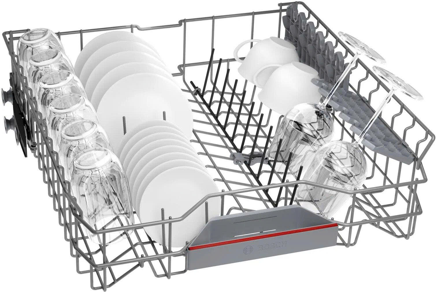 Hệ thống giàn rửa của Máy rửa bát Bosch SMV6ZCX10E gồm có 1 ngăn kéo và 2 giàn rửa (gọi là giàn trên và giàn dưới). Ngăn kéo trên cùng để chứa dụng cụ nhỏ như dao, kéo, đũa, ly nhỏ. Giàn trên để chứa chén bát, đĩa, ly loại cỡ vừa. Giàn dưới để chứa các dụng cụ lớn như nồi chảo, thớt, rổ, bát tô, đĩa cỡ lớn. Máy có sức chứa lên tới 14 bộ chén bát, phù hợp cho gia đình từ 4-6 thành viên.