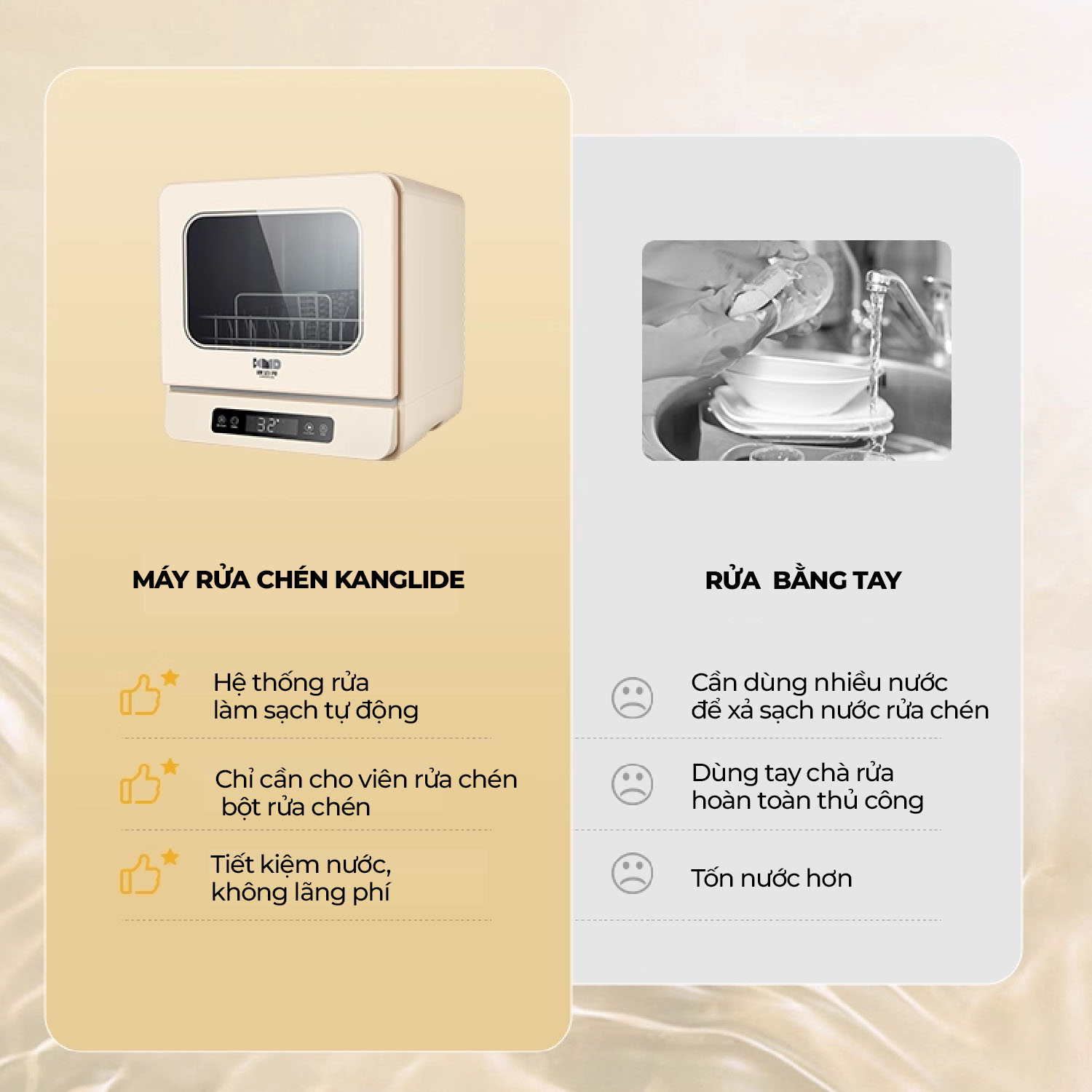 Người dùng sẽ cảm nhận rõ sự tiện lợi khi không còn phải dành hàng chục phút mỗi ngày cho việc rửa bát. Bát đĩa luôn sạch bóng, khô ráo và an toàn nhờ công nghệ khử khuẩn UV. Gia đình có thêm thời gian nghỉ ngơi, tận hưởng cuộc sống hiện đại.