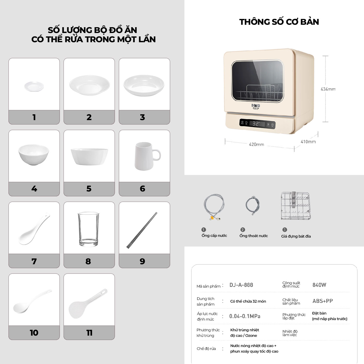 | Chức năng | Rửa sạch – Sấy khô – Khử khuẩn UV |
