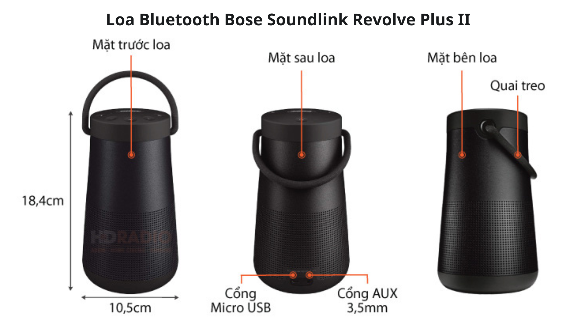 - Bose SoundLink Revolve+: Âm thanh 360 độ, thời lượng pin lên đến 16 giờ.