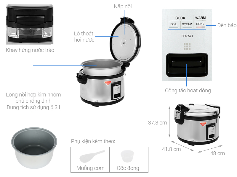 | Chức năng | Nấu cơm, Hấp, Giữ ấm |