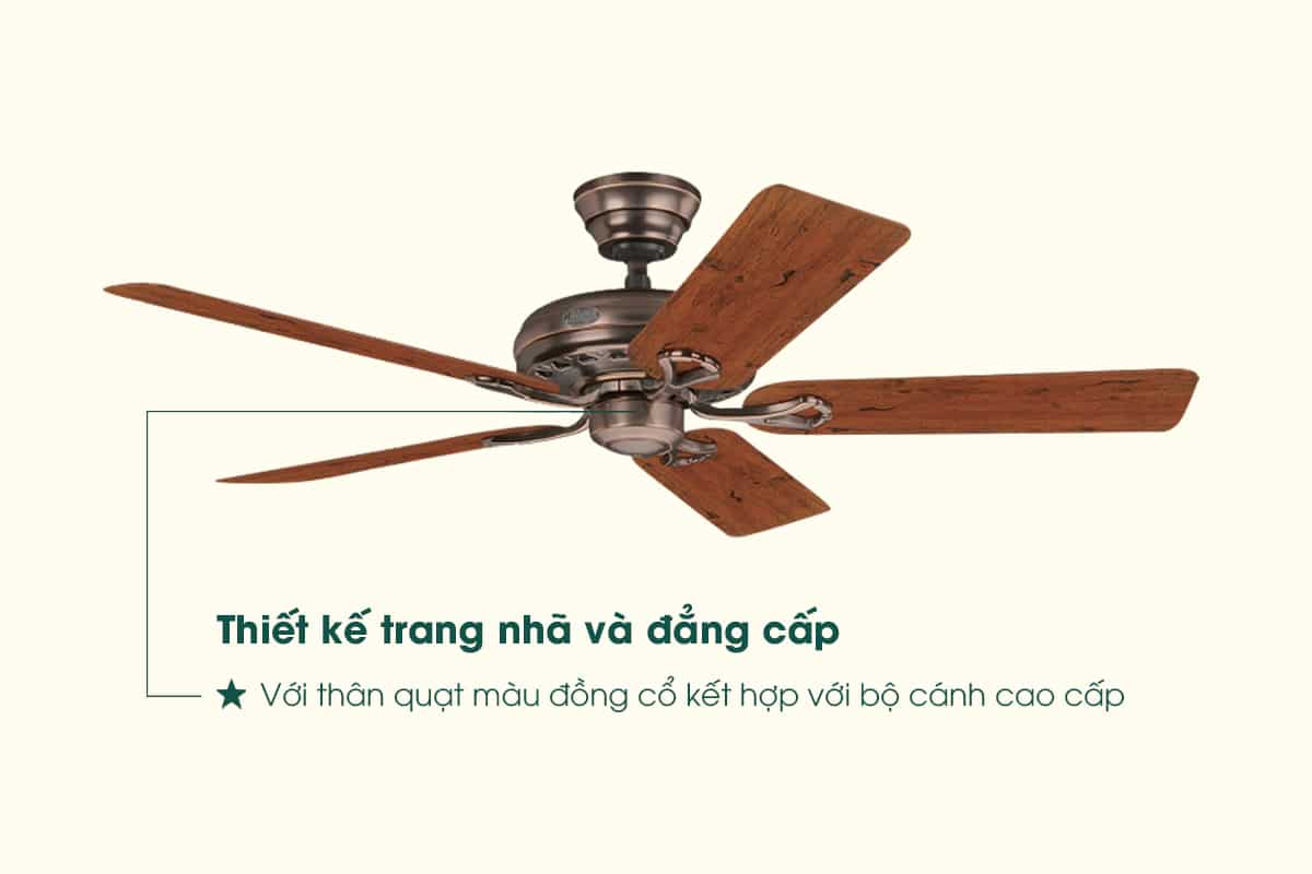 - Mẫu quạt trần Hunter Savoy: Sải cánh 132cm, động cơ WhisperWind hoạt động êm ái.
