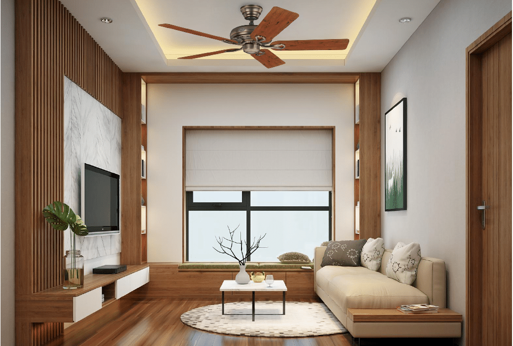 - Kích thước quạt trần cần cân đối với diện tích phòng khách. Những phòng khách lớn nên chọn quạt có sải cánh dài, trong khi phòng nhỏ hơn có thể chọn quạt cỡ trung.