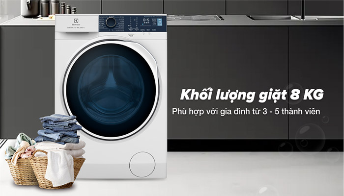- Mẫu máy nổi bật: Electrolux EWF8024D3WB (8kg, giá ~ 9 triệu VNĐ).