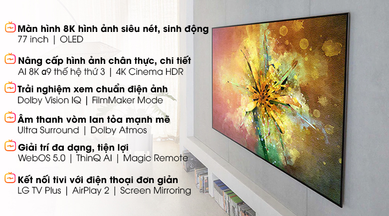 - Màn hình: 77 inch OLED, độ phân giải 8K.