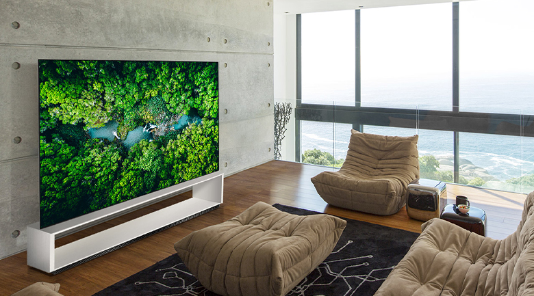 - Với những ai yêu thích trải nghiệm rạp chiếu phim tại nhà, tivi 8K là lựa chọn hoàn hảo. Hãy kết hợp tivi với hệ thống âm thanh vòm và ánh sáng tối giản để có trải nghiệm tốt nhất.