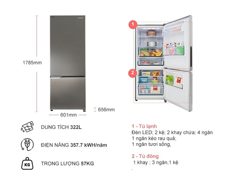 1. Tủ lạnh Panasonic Inverter 322 lít NR-BV360QSVN