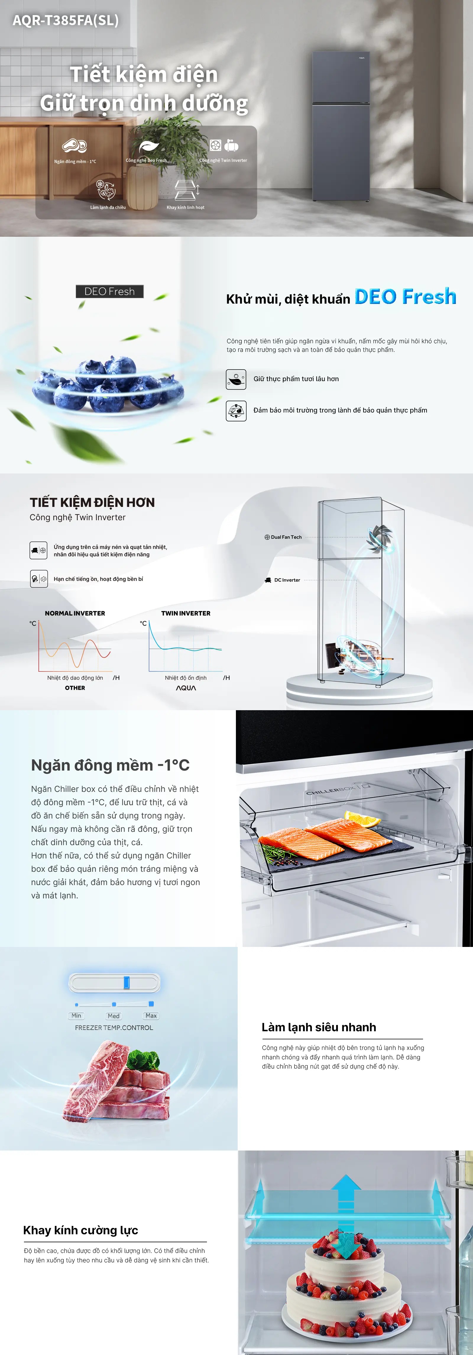 Bỏ qua Aqua AQR-T410FA(GB) đồng nghĩa với việc bạn tiếp tục đối mặt với hóa đơn tiền điện tăng cao từ những chiếc tủ cũ kỹ, hay nỗi lo thực phẩm nhanh héo úa, biến chất. Cảm giác hài lòng khi thưởng thức thực phẩm tươi ngon mỗi ngày là điều mà những dòng tủ lạnh thông thường khó lòng đáp ứng trọn vẹn được như mẫu máy này.