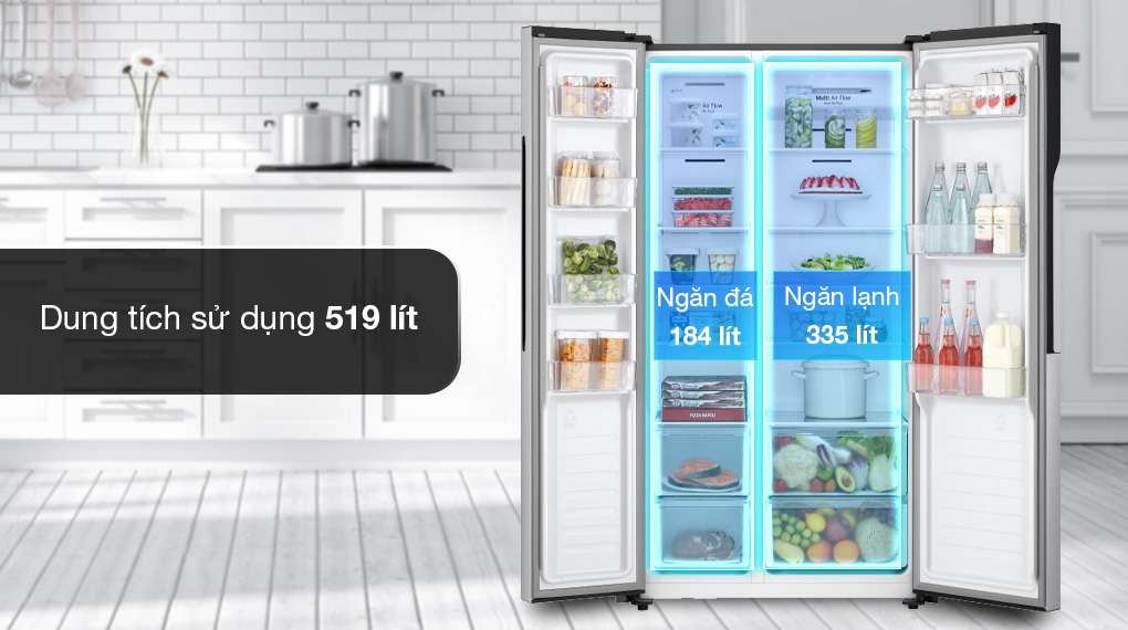 - Tính năng: Ngăn đông mềm, ngăn rau quả lớn, phân khu linh hoạt, khử mùi, tiết kiệm điện.