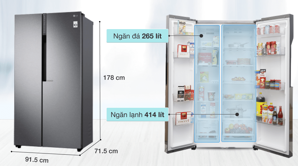 - Thiết kế side-by-side hiện đại, phù hợp với không gian bếp lớn.