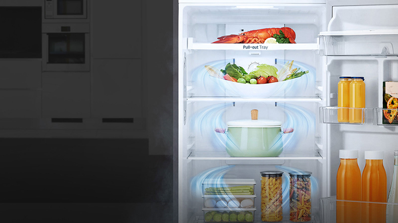 Hệ thống khí lạnh đa chiều cho phép hơi lạnh tỏa ra từ nhiều hướng khác nhau: chính diện, hai bên hông và cửa tủ. Thực phẩm sẽ đảm bảo luôn được làm lạnh dù bạn đặt ở bất kỳ ngóc ngách nào trong tủ hay khi tủ đã được sử dụng đầy.