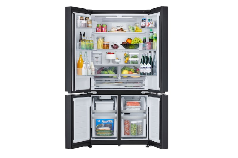 Tủ lạnh có thiết kế Multi Door 4 cánh với ngăn lạnh đặt phía trên và ngăn đá phía dưới, bố cục rõ ràng, thuận tiện cho việc sắp xếp và lấy thực phẩm dùng hằng ngày.