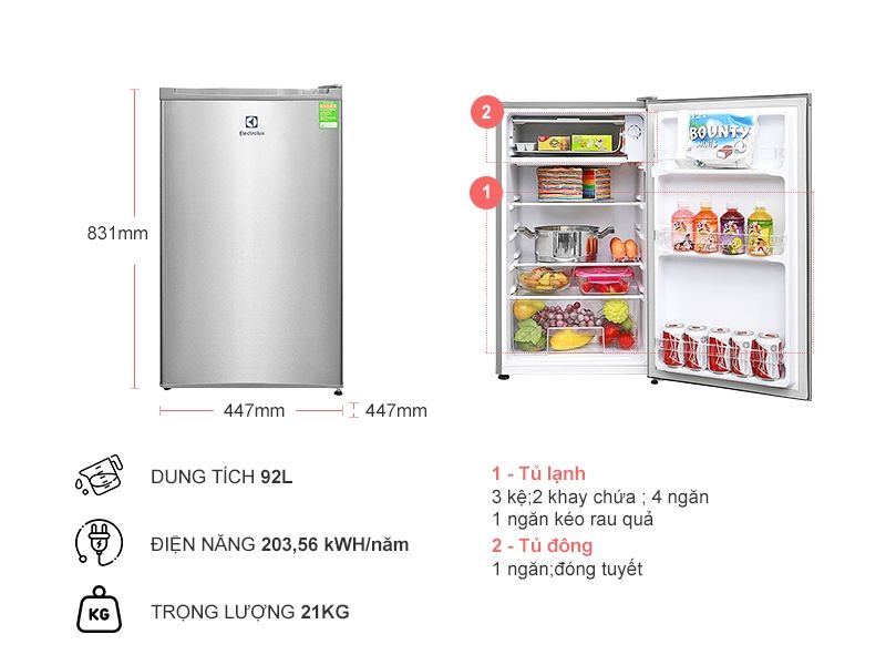 Tủ lạnh mini có dung tích nhỏ, nếu để quá nhiều thực phẩm sẽ giảm hiệu quả làm lạnh, tăng tiêu thụ điện. Nên sắp xếp thực phẩm hợp lý, không chặn các lỗ thông khí.