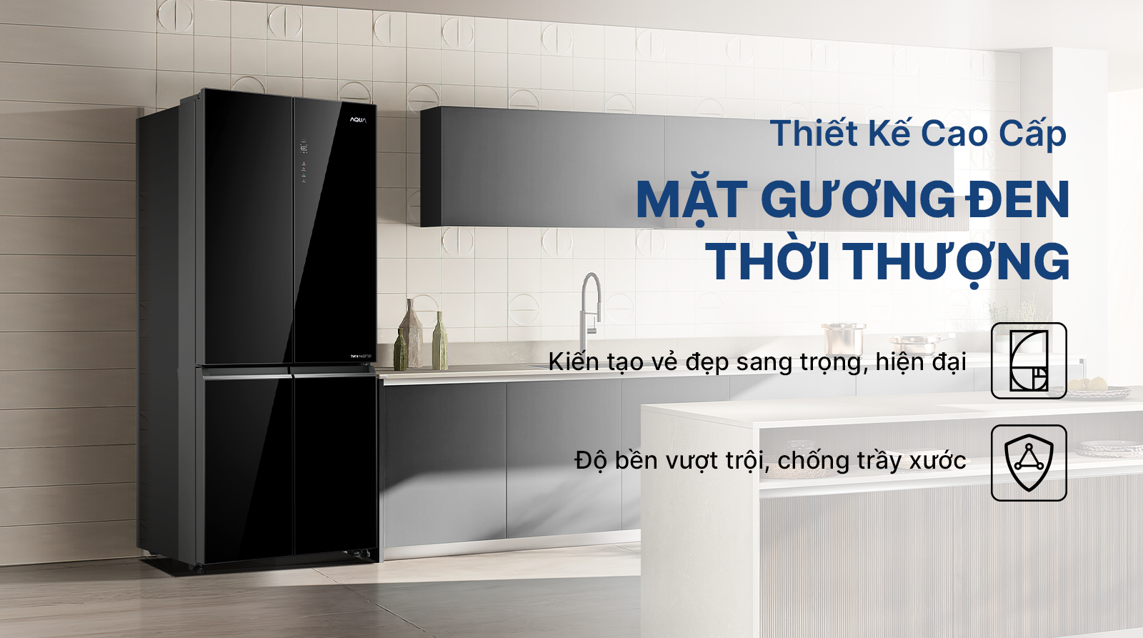 Tủ lạnh 4 cửa AQR-M600XA(GB) mặt gương đen hội tụ đầy đủ yếu tố của một thiết bị gia dụng cao cấp: công nghệ bảo quản thông minh, diệt khuẩn an toàn, vận hành tiết kiệm điện, thiết kế sang trọng và tiện ích đa dạng. Đây là giải pháp hoàn hảo để nâng cấp không gian bếp và trải nghiệm sống hiện đại cho gia đình bạn.