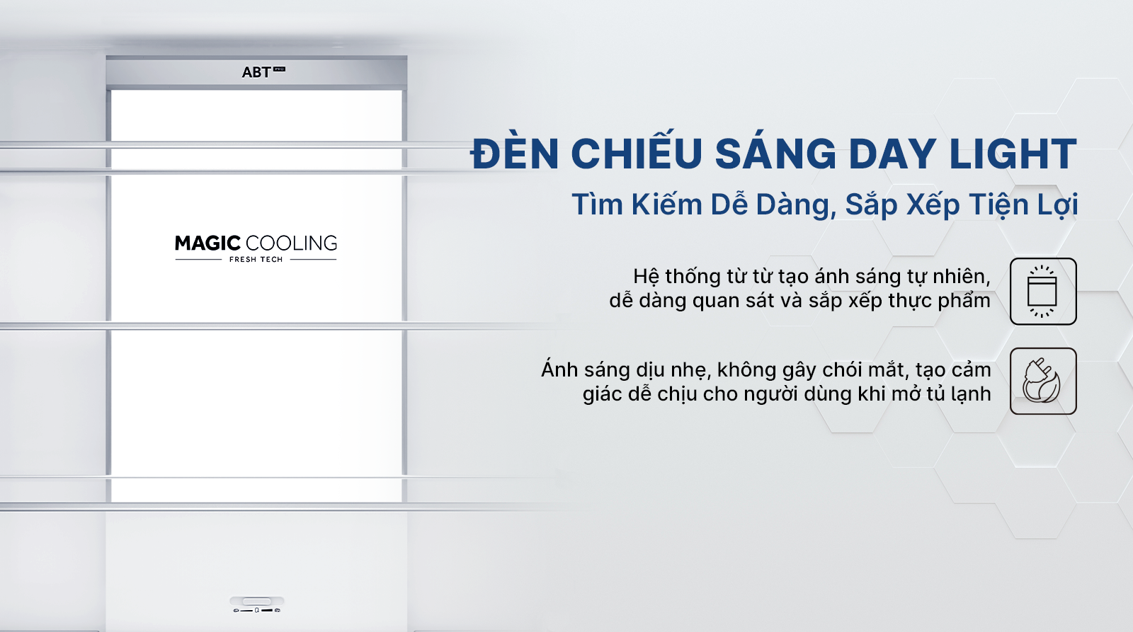 Không khí trong lành, thực phẩm an toàn nhờ công nghệ ABT Pro diệt khuẩn khử mùi.