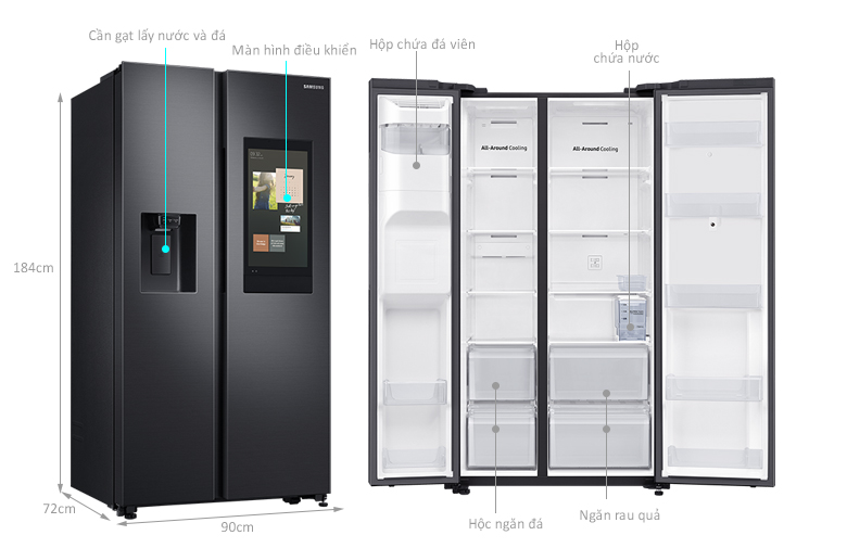 - Màn hình cảm ứng lớn, camera bên trong tủ